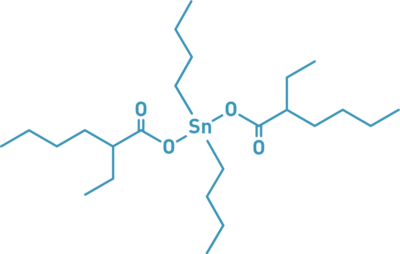 Further applications are generally found in the catalysis of polymerization reactions as well as a process additive for lubricants. The stabilizing properties of dibutyltin bis-ethylhexanoate are used in PVC plastics, which thus become more weather-resistant.